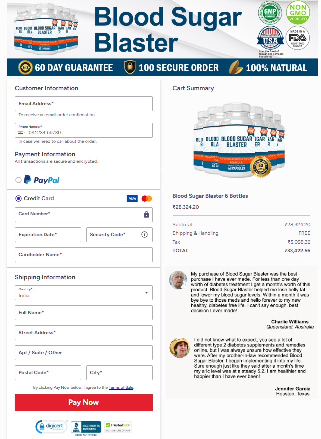 The instant you press “Buy Now,” you’ll land on our safe, SSL-encrypted payment page. Just provide your details, and your Blood Sugar Blaster purchase will be confirmed.