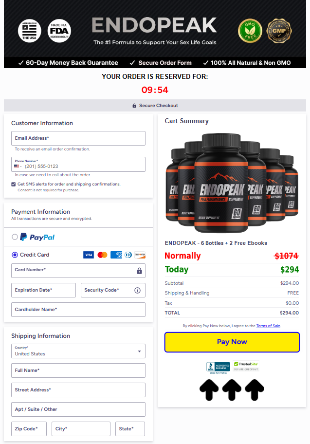The instant you press “Buy Now,” you’ll land on our safe, SSL-encrypted payment page. Just provide your details, and your Endopeak purchase will be confirmed.