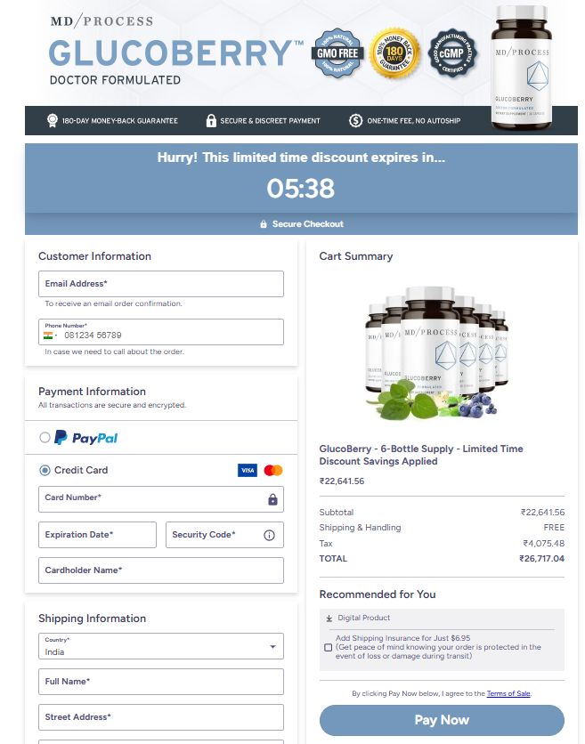 The instant you press “Buy Now,” you’ll land on our safe, SSL-encrypted payment page. Just provide your details, and your Glucoberry purchase will be confirmed.