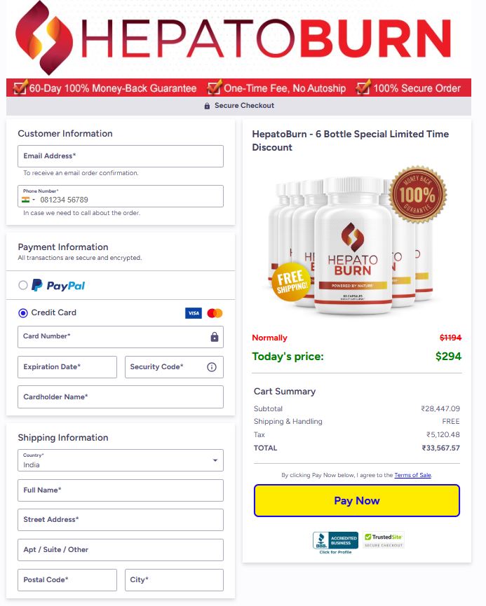 The instant you press “Buy Now,” you’ll land on our safe, SSL-encrypted payment page. Just provide your details, and your HepatoBurn purchase will be confirmed.