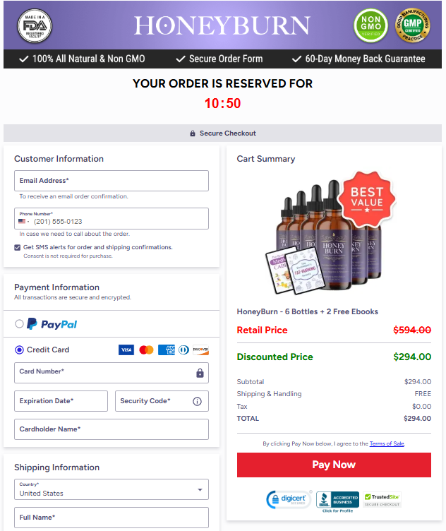 The instant you press “Buy Now,” you’ll land on our safe, SSL-encrypted payment page. Just provide your details, and your HoneyBurn purchase will be confirmed.