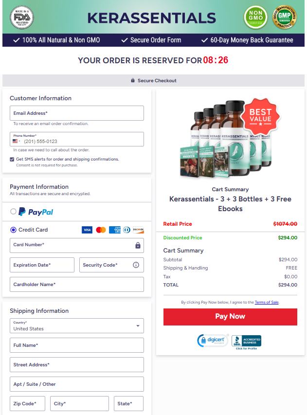 The instant you press “Buy Now,” you’ll land on our safe, SSL-encrypted payment page. Just provide your details, and your Kerassentials purchase will be confirmed.