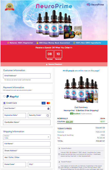 The instant you press “Buy Now,” you’ll land on our safe, SSL-encrypted payment page. Just provide your details, and your NeuroPrime purchase will be confirmed.