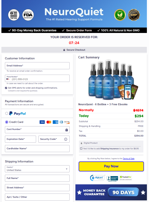 When you make a purchase of the NeuroQuiet supplement from us, you can be confident that your online privacy is a top priority for us. We take care to ensure that your sensitive information is protected during the checkout process.