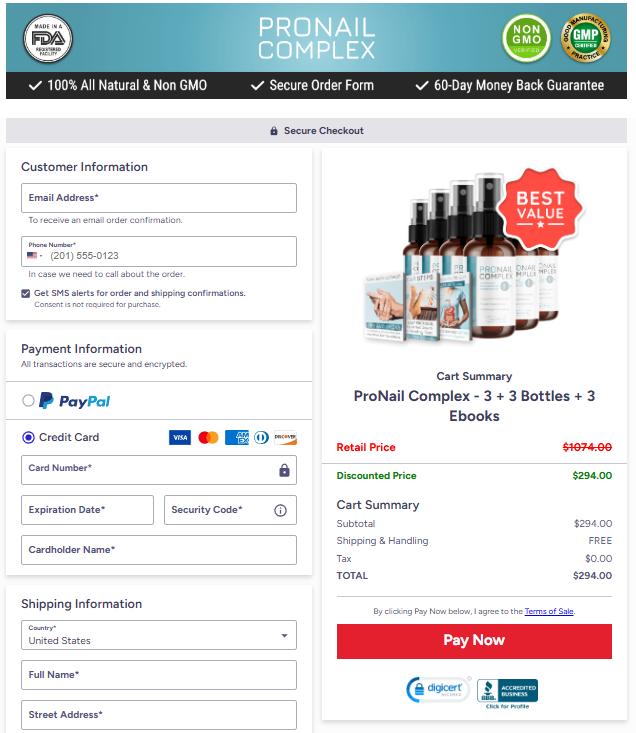 The instant you press “Buy Now,” you’ll land on our safe, SSL-encrypted payment page. Just provide your details, and your Pronail Complex purchase will be confirmed.