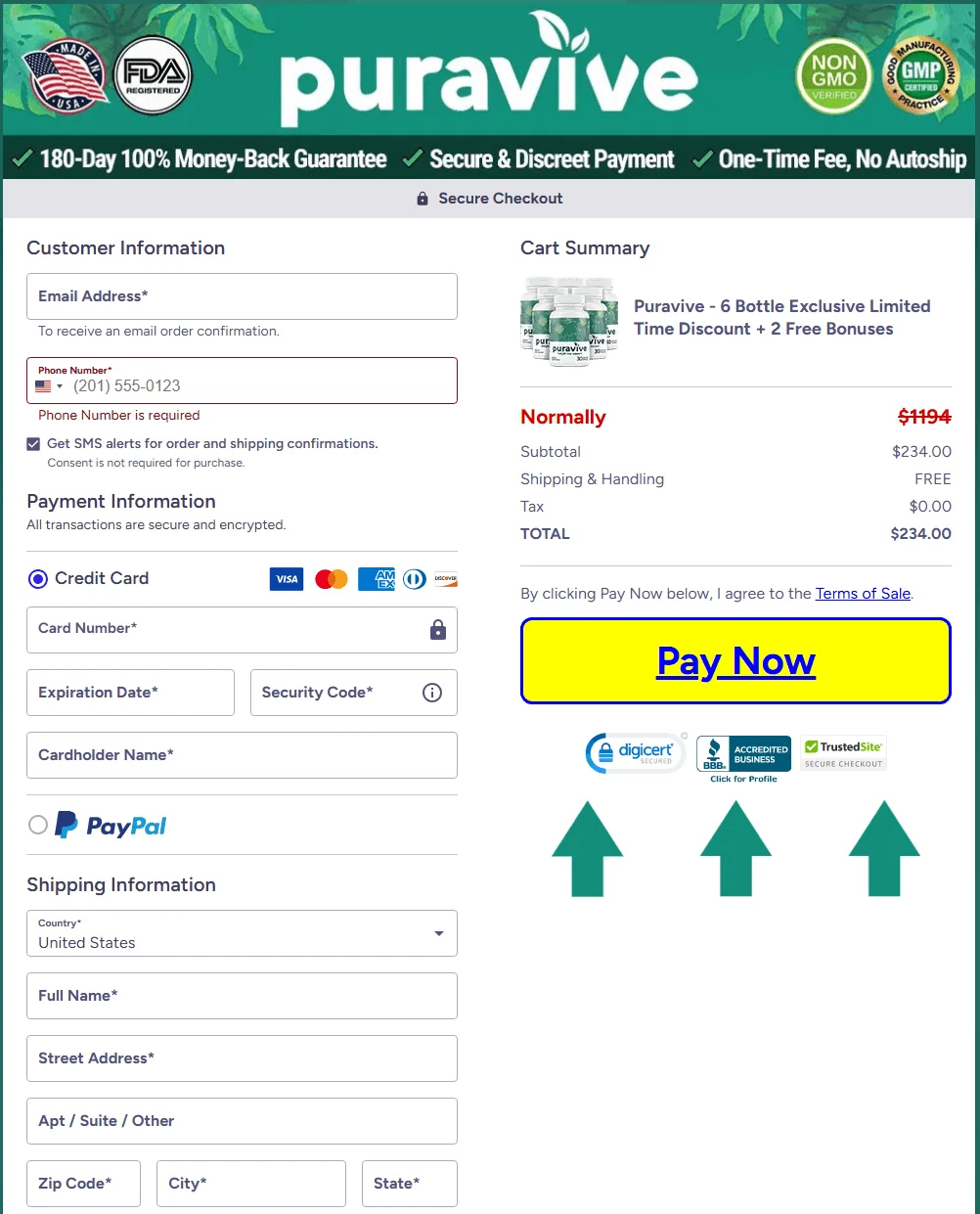 The instant you press “Buy Now,” you’ll land on our safe, SSL-encrypted payment page. Just provide your details, and your Puravive purchase will be confirmed.