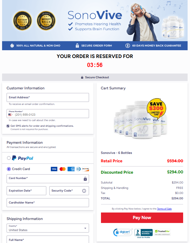 The instant you press “Buy Now,” you’ll land on our safe, SSL-encrypted payment page. Just provide your details, and your SonoVive purchase will be confirmed.